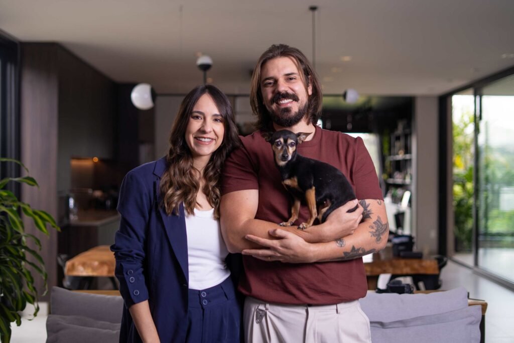 Léo – Não usamos protetor de focinho, até porque não ficamos muito tempo na rua com eles. Quando saímos, tomamos cuidado, principalmente porque temos dois bulldogs ingleses, que são braquicefálicos. Eles cansam muito rápido e têm mais dificuldade para respirar e ventilar. O Spitz também tem um tempo menor de tolerância à atividade física. Então, não ficamos tempo suficiente expostos para exigir protetor. Eles gostam muito de nadar, a Madalena, principalmente. Então permitimos, mas de forma controlada, por conta do cloro e do sol. Sempre que ela nada, precisamos secá-la bem, porque a umidade pode gerar fungos e problemas de pele, especialmente em bulldogs que têm mais tendência. As orelhas também precisam ser bem secas para evitar inflamações. Usamos toalha e secador quando necessário. Também utilizamos bastante o pet shop, onde fazem limpeza completa, escovação de dentes, limpeza de orelhas e das dobrinhas. Não damos banho com frequência excessiva, porque, dependendo da raça e da rotina, menos banho pode ser melhor para evitar alergias. O Spitz exige um pouco mais de cuidado nesse sentido. Em casa damos banho quando necessário e contamos com o serviço do pet shop para manutenção da higiene. Acho importante conhecer bem o local e explicar as necessidades do pet. Por exemplo, pedimos para não usar perfume, pois pode causar alergia nos bulldogs, e reforçamos a limpeza das dobrinhas. É importante que o pet shop seja parceiro, quase como uma extensão da sua casa, mantendo a mesma rotina de cuidados com apoio profissional.